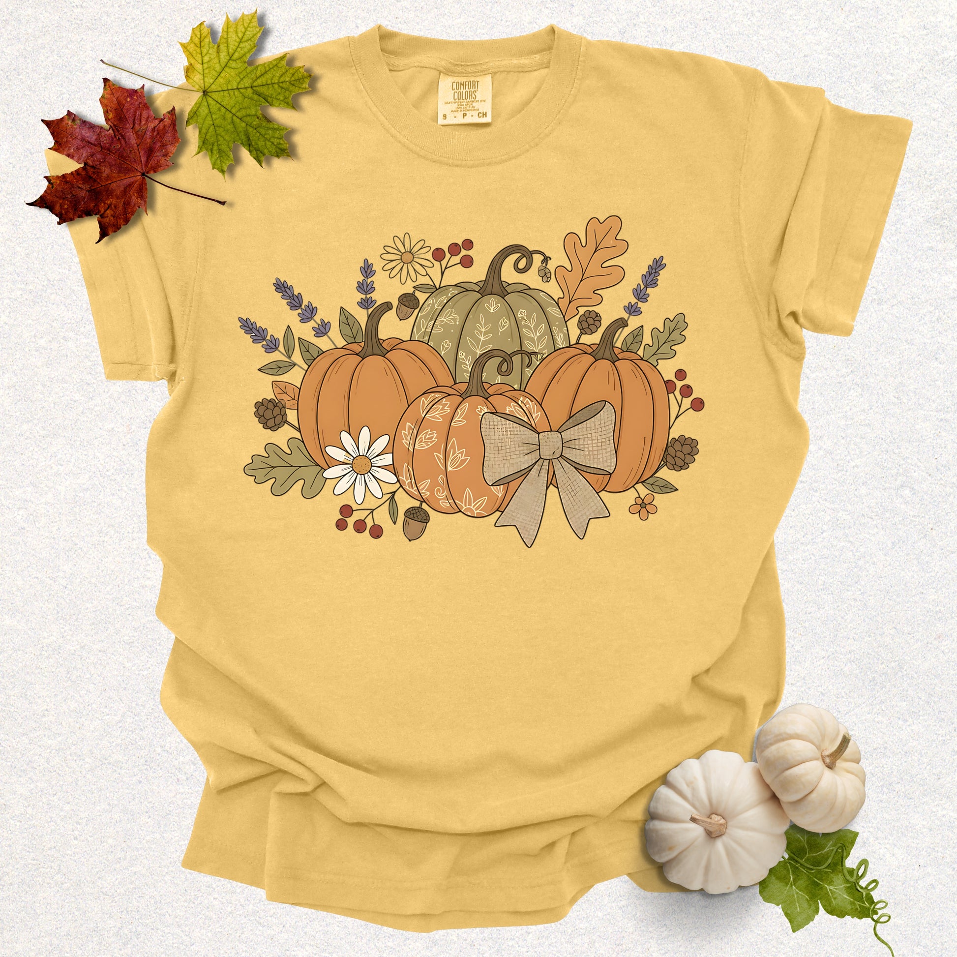 Embrace the cozy warmth of fall with this charming unisex garment-dyed t-shirt. Featuring a beautiful design of pumpkins and autumn florals, it adds a delightful touch to your seasonal wardrobe. Perfect for casual outings, family gatherings, or cozy nights in, this shirt radiates a relaxed and welcoming vibe. Ideal for those who cherish autumn aesthetics, it's perfect for anyone celebrating Halloween, Thanksgiving, or simply enjoying the beauty of the fall season. This versatile t-shirt offers comfort and style, making it a staple for cool autumn days.