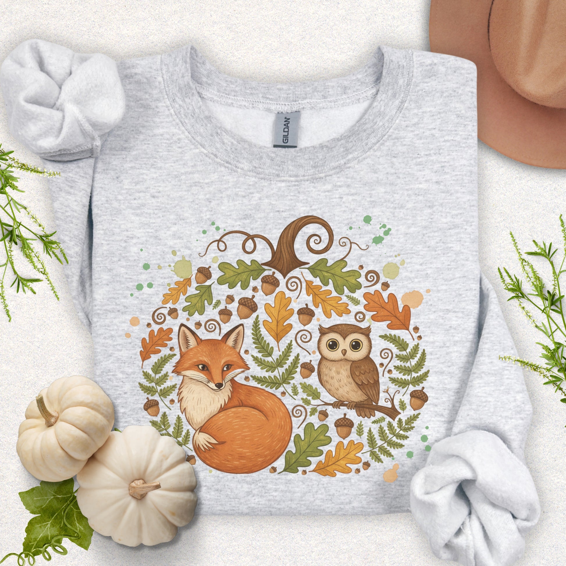 Embrace the cozy charm of this Unisex Heavy Blend™ Crewneck Sweatshirt. With a delightful design featuring a warm fox and wise owl among autumn leaves, it radiates a whimsical atmosphere that’s perfect for nature lovers. This sweatshirt is ideal for chilly fall days or cozy gatherings with friends. It's a great addition to anyone seeking comfort without sacrificing style. Perfect for seasonal celebrations like Thanksgiving or Halloween, it makes an excellent gift for friends and family who appreciate cute and cozy apparel. You'll feel relaxed and stylish as you layer it over your favorite outfits for a casual yet thoughtful look.